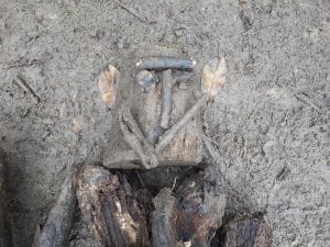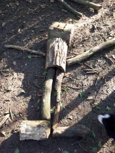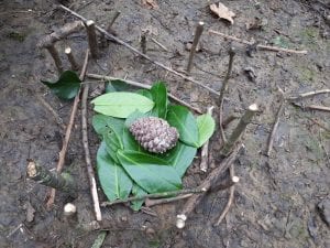 In the small wood the children were tasked with the challenge of creating a scene from the book. Some children used a pine cone for the Iron Mans eye in the Seagulls nest, others made the parts of the Iron Man at the bottom of the cliff, whilst others created Iron Man himself.