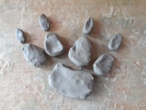 jam jar lid, lump of air drying clay and bits of nature from the farm