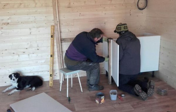It has been a cold and busy morning. The new visitor room is up but there is still lots of work to do. Tess and Heather are varnishing every single bit of exposed wood, which is a lot. I am so glad they agreed to take on the work. Ian is busy putting in the DDA compliant toilet and Mike has been wiring in the outside lights.