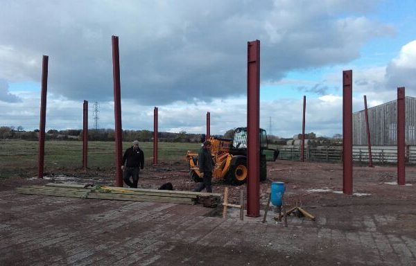 Whilst I have been busy with the visitor room build, Rob has been busy arranging the build of a new cow shed at Sandfield Farm.