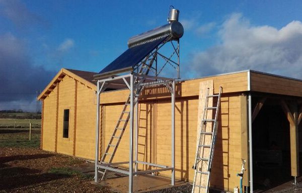 So today was the big day. We had to take the solar hot water system off the old classroom roof, wash it, transport it to the visitor room and position it onto the new stand.