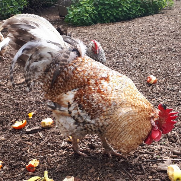 We then went to see the chickens and the children quickly spotted my handsome cockerel. I asked them how they knew that he was the cockerel and that the others were hens.