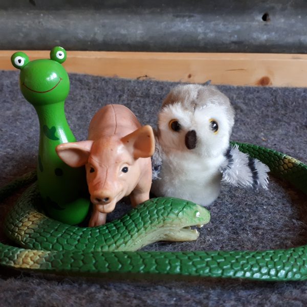The lovely chatty Willow class from Astley CE School came to the farm today to learn about animal classification. We started the day thinking about different animals and their characteristics. I lined up all my animal toys and we could see similarities and differences. The toys were split into mammals, amphibians, reptiles and birds. I also put out some feathers and had ‘buzz’ my stuffed Buzzard to show the children.