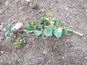 Later on in the play wood, a couple of children carried on with the topic, picking up feathers and birds feet (!) left from the buzzards kill.