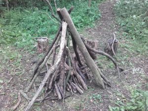 Once in the den building wood the children were split into groups and were asked to build something medieval. There were some great ideas including a fire for cooking venison on, castle walls, a kings grave and one child turned a stick into a knights horse.