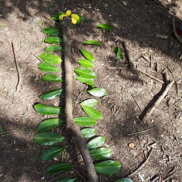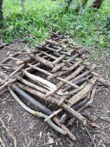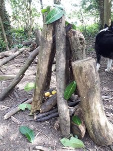 In the den building wood the children were asked to build a beanstalk, using sticks and leaves. They were asked to make a nest of golden eggs at the top of the beanstalk.