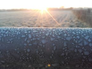 Ice on a farm can be both a curse and blessing. Frozen water troughs and pipes add to the work load, but the frozen ground often means we can go onto tracks or fields without damaging the plants and soil. Most of our cows are in the shed at the moment, but a few of the ‘dry’ cows are out on fodderbeet. Dry cows are non milking cows, they have ‘dry’ udders as they are heavily pregnant and need a chance to grow the calf and build up reserves before milking starts after calving. Sandfield Farm as the name suggests has very sandy soils which drain well in the winter months. The cows are able to be out on the sandy soil and not cause any lasting damage to the soil structure. The cows love it and come in for calving in a great physical state.