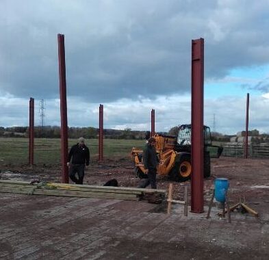 Whilst I have been busy with the visitor room build, Rob has been busy arranging the build of a new cow shed at Sandfield Farm.
