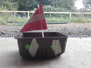 Splash was a lovely topic to do with the reception children from Gretton Primary School. After the health and safety talk the children made boats from recycled fruit punnets, straws and yoghurt pots. After snack the children proudly carried their creations to the pond. The wind was quite strong today and I was a little worried that the sails on the boats wouldn’t survive the journey.