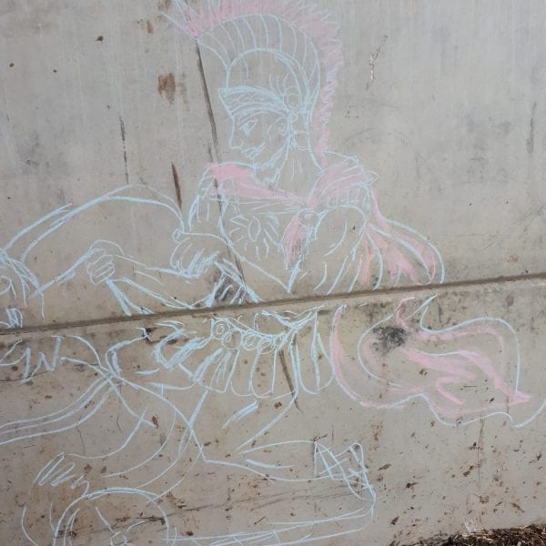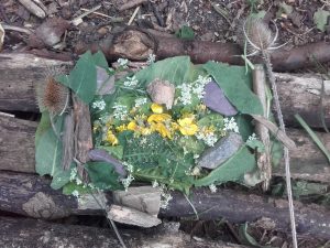 During the farm walk the children collected items from nature. Once inside the den building wood the children used their gathered items to design a roman mosaic tile and a lion which may have fought the gladiators. Some children also decided to make an elephant which Romans used in combat.
