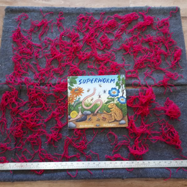 We then moved onto the book ‘Super-Worm’ which then lead on to me explaining how farmers love worms and the role worms have to play in nutrient release and providing air and water channels. I measured out a cubic metre and asked the children to guess how many worms live in a healthy soil of that size. Answer 740.